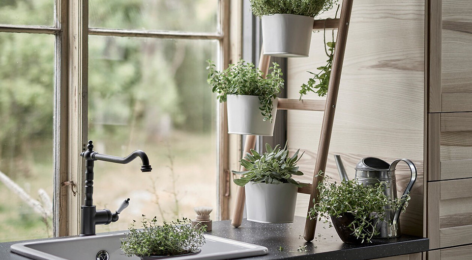 На кухне мы проводим немало времени, так почему бы не попытаться найти место для размещения комнатных цветов именно здесь?