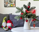 Стать центром притяжения гостиной может даже совсем маленькая елочка. Разместите ее на придиванном столике в центре комнаты. Кроме этого, можно задействовать прикроватную тумбу или комод в спальне — просыпаться и вдыхать хвойный аромат будет особенно приятно. И, конечно, мини-деревце можно поставить на консоль в прихожей.