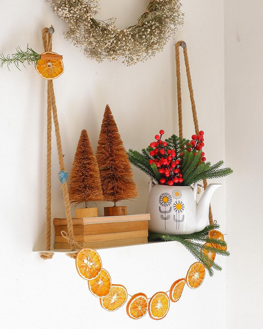 Почти в каждом доме есть хотя бы пару открытых полок. И их стоит включить в новогоднее декорирование жилья. Помимо гирлянды или еловых лап, можно поставить на них маленькое деревце: в горшочке или в виде стилизованной фигурки. Вариант дизайна будет зависеть от общей концепции праздничного украшения.