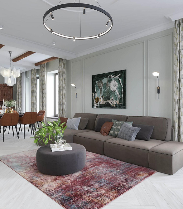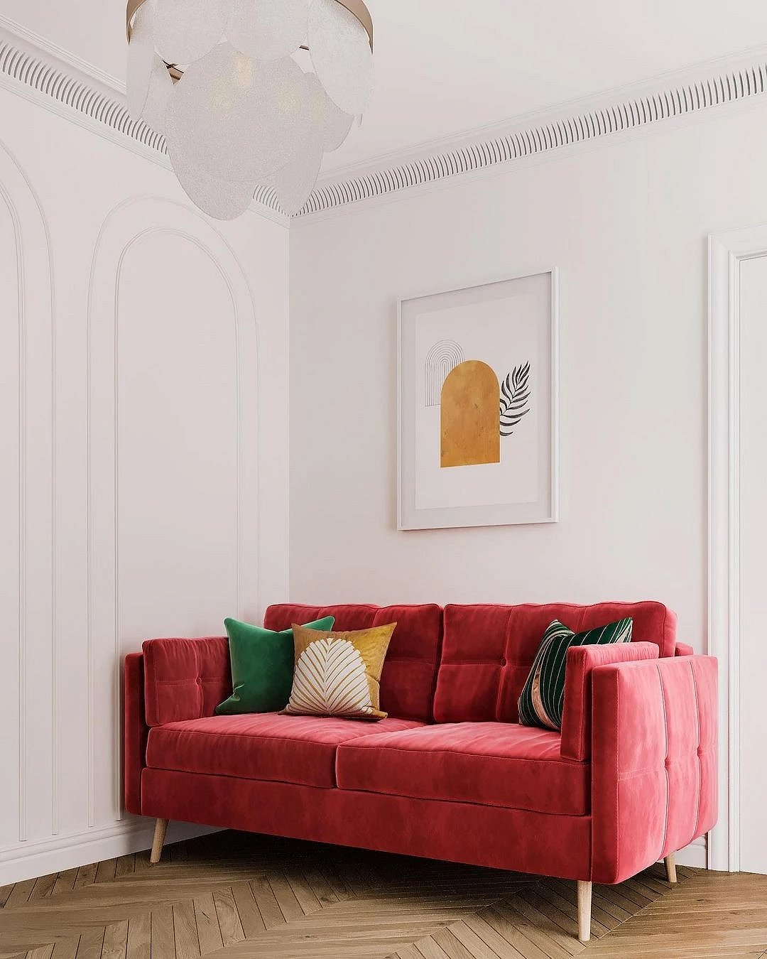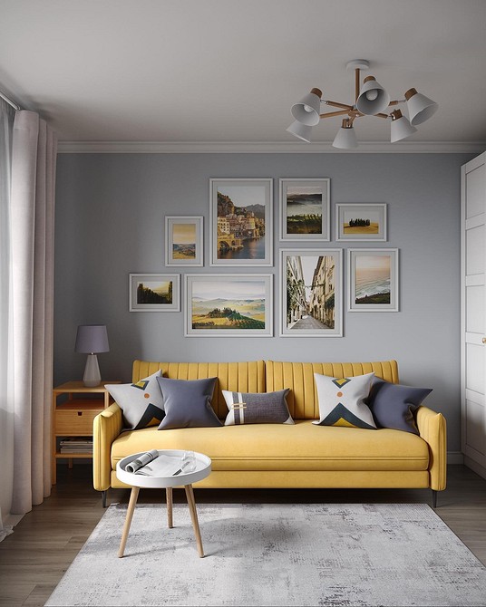 Диван — крупная и, как правило, акцентная мебель, которая сразу притягивает взгляд. Поэтому один из лучших способов оформить мягкую группу — повесить над ней интересную и самобытную живопись. Крупное полотно усилит акцент, композиция из нескольких небольших добавит уюта, а портрет или оригинальный сюжет привнесут в интерьер элемент истории. В зависимости от размера комнаты и доступной площади над диваном можно разместить одно изображение, несколько сочетающихся или сделать целую галерею, заполнив все пространство.