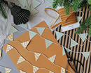 Они могут быть любыми — от классических флажков с новогодними мотивами до трехмерных фигурок-оригами на зимнюю тематику. И все же чаще всего это будут снежинки, праздничные елочки, дед Мороз и Снегурочка и т.д.
