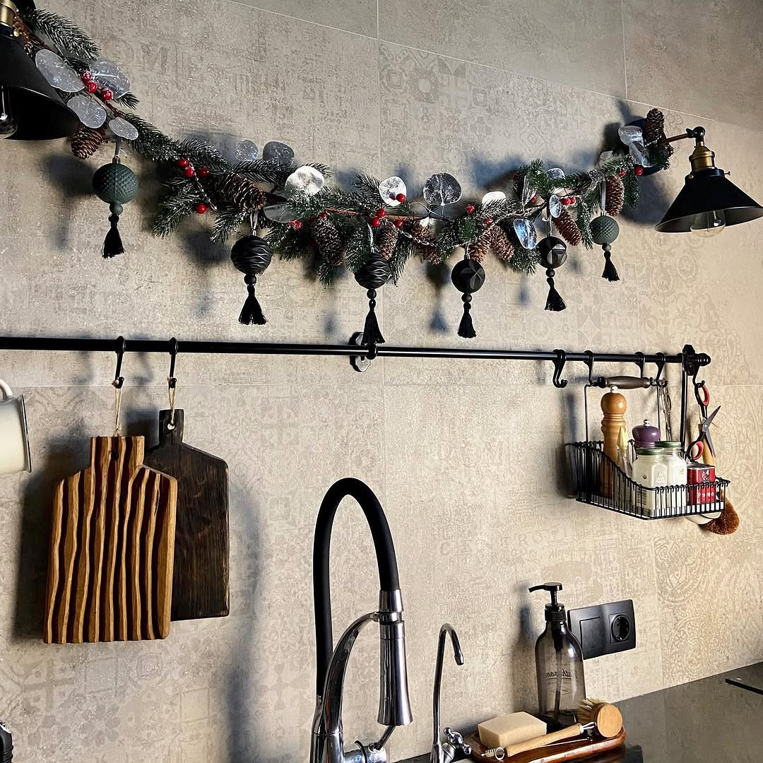 При этом декор должен быть хорошо виден и в то же время не мешать никому. С этой точки зрения в гостиной самыми удачными локациями будут пространство над диваном или телевизором, настенные бра и т.д. В спальне — стена над изголовьем кровати. На кухне можно украсить место над обеденным столом, в коридоре — красиво оформить зеркало. Кроме того, в любой комнате можно повесить гирлянду на дверной наличник, закрепить ее вдоль открытой полки (при условии, что под ней нет других полок, выдвижных ящиков и т.д.) или красиво разложить на подоконнике.