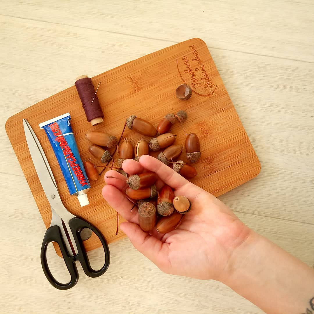 - Проденьте через каштаны нить — оригинальное украшение готово.