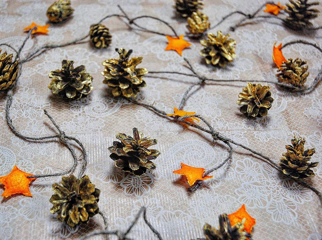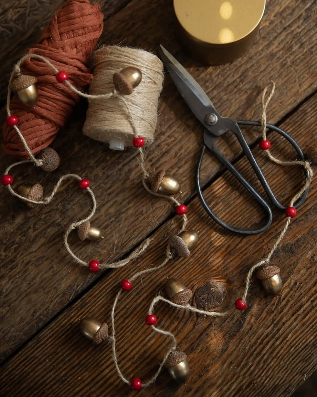 Если осенью вы успели насобирать шишек и желудей, из них получится отличное праздничное украшение.