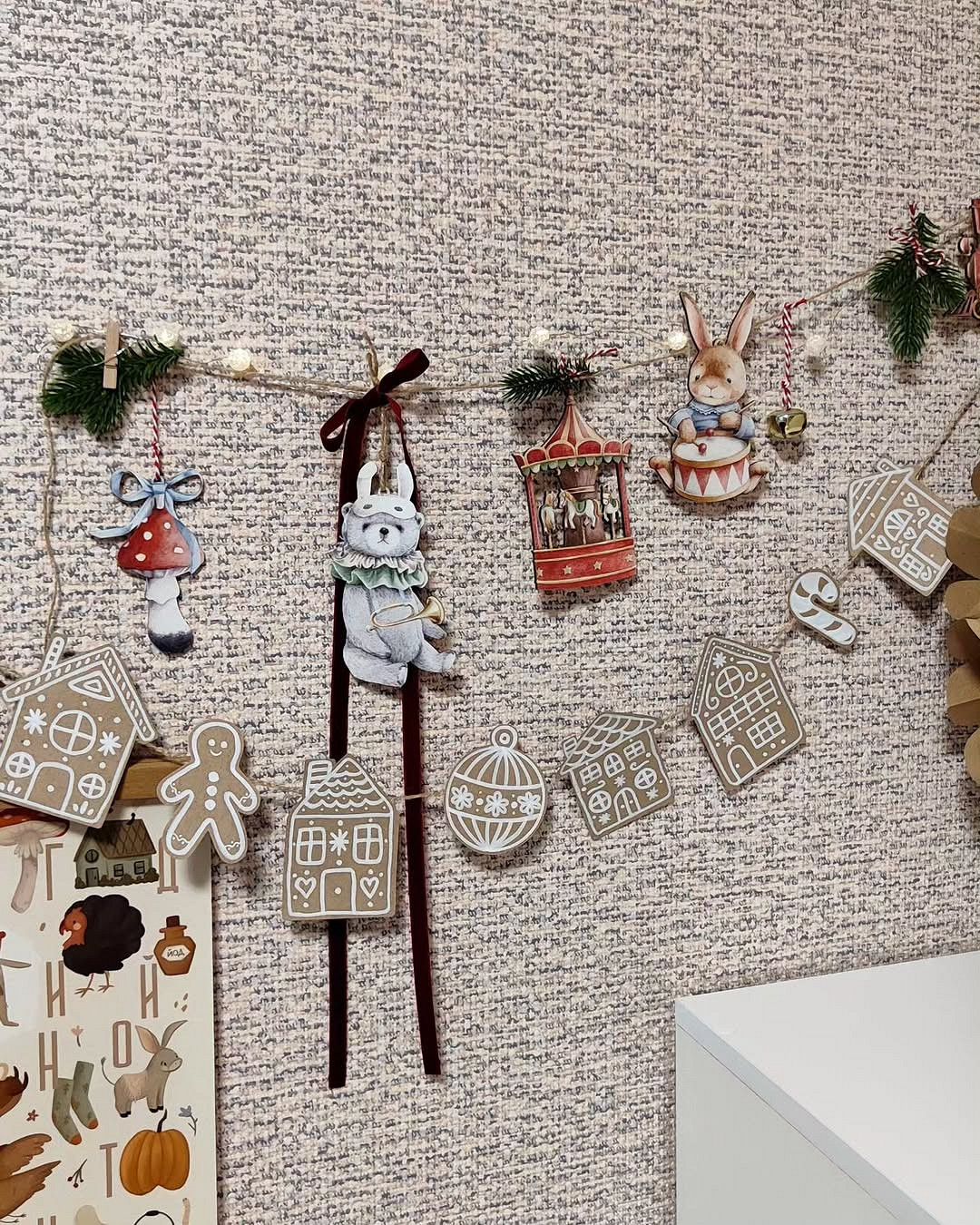 Самое простое и в то же время традиционное украшение — это лента, на которую приклеены бумажные фигурки.