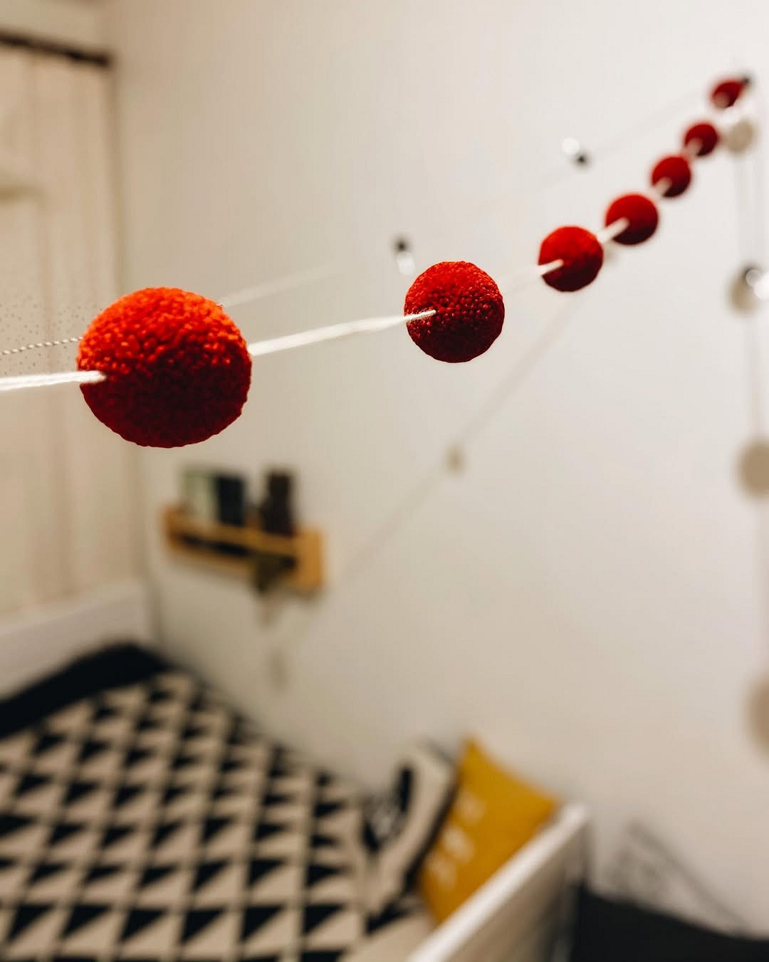Если времени на творческие эксперименты нет, можно буквально за вечер сделать гирлянду из помпонов.