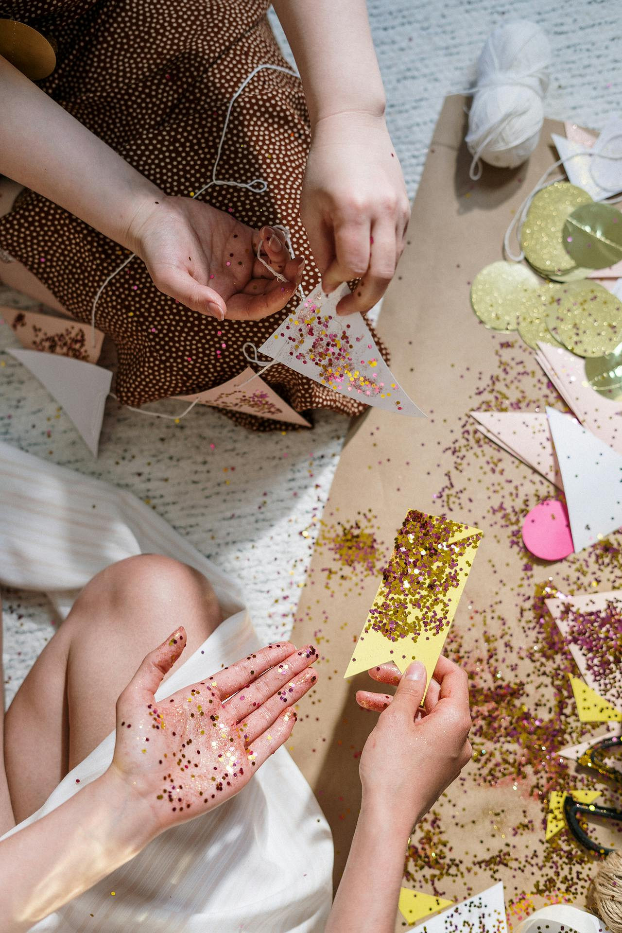 Лента, веревка или шнур нужны не всегда: например, бумажные гирлянды из колец или растяжки вполне можно сделать без них. Однако все же часто это один из главных элементов украшения, поэтому к его выбору надо отнестись ответственно. Обычно берут металлизированные модели, которые переливаются красивыми бликами на свету, либо крафтовые варианты — грубый шпагат или бечевку.