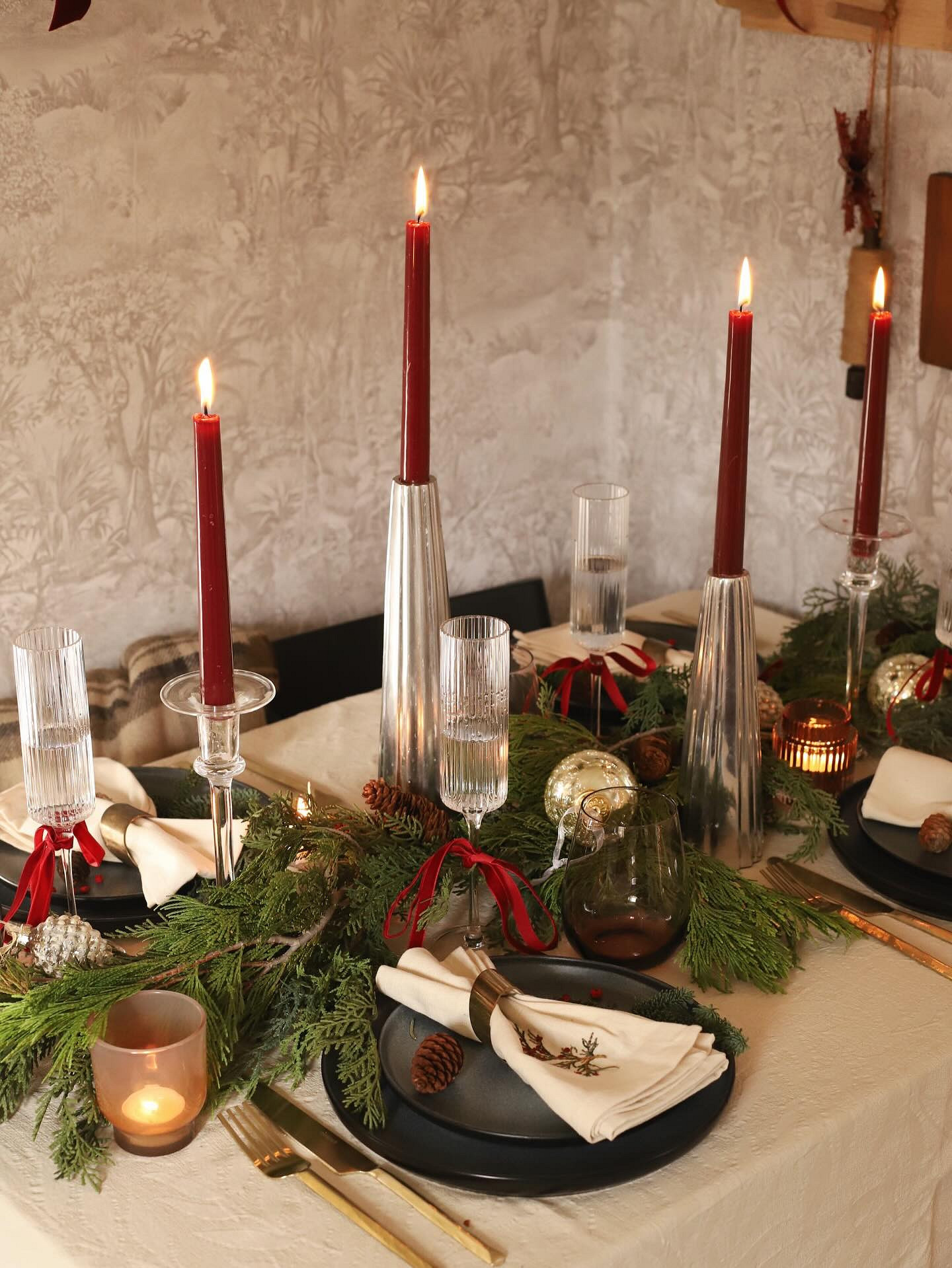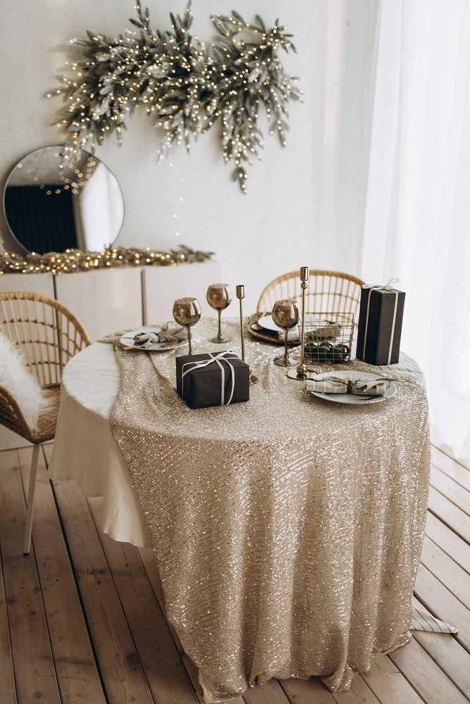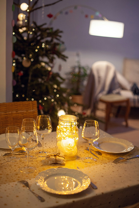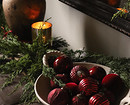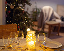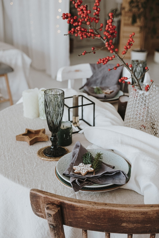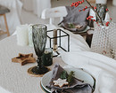Главную роль здесь играет сервировка стола. И не только в сам праздник — использовать тематические украшения, посуду и текстиль можно заранее, чтобы каждый день поддерживать новогоднее настроение. Поставьте на стол хвойный букет или композицию из сухофруктов и специй: они вызывают приятные ассоциации и не мешают общению.