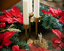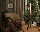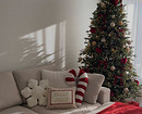 Небольшую комнату важно не перегрузить новогодними украшениями. Для этого выберите одну доминанту и поддержите ее более спокойными деталями: венком на стене, веточками в вазе, свечами и т.п.