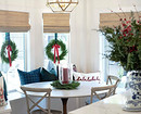 Еще один вариант классического декора — гирлянда (светодиодная либо из елочных шаров и игрушек), еловые лапки и большие банты. Особенно актуально такое оформление, если вы не ставите дома елку: веточки хвои на окнах вполне способны заменить ее и создать новогоднее настроение. Украшая оконные проемы таким образом, не забывайте выдерживать единую цветовую гамму. Выберите 2-3 сочетающихся оттенка (например, белый и синий или зеленый, красный и золотой) и следите, чтобы весь декор был выполнен именно в них.