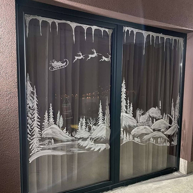 Также можно нарисовать зимние пейзажи прямо на окне. Сделать это можно от руки либо через трафарет. Чем выполнить такую картинку?