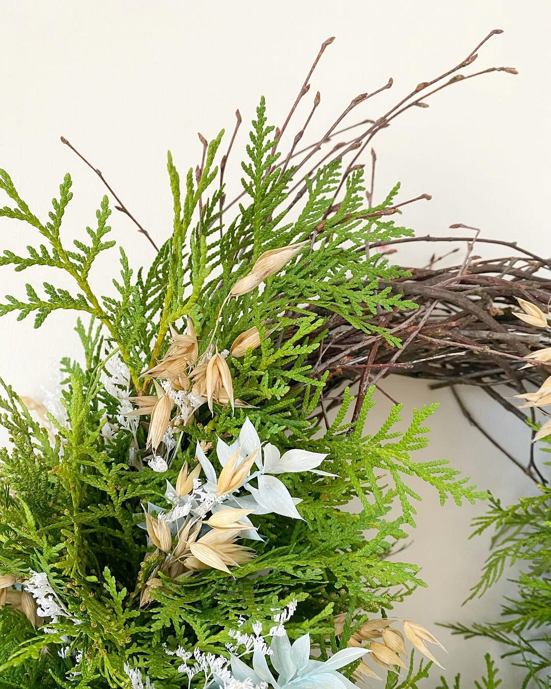 А значит, украсить окна к Новому году 2026 надо именно в красных оттенках — от вызывающе алого до глубокого бордо. Дополнить их можно зеленой хвоей, гирляндами с теплым желтым светом и игрушками в золотой гамме: подойдут все огненные тона — оранжевый, желтый, кирпичный и т.д. Также будут уместны композиции из засушенных злаков — они наверняка понравятся хозяйке года: можно поставить на окно вазу с высохшими колосьями пшеницы и ячменя или повесить гирлянду из самодельного овсяного печенья.