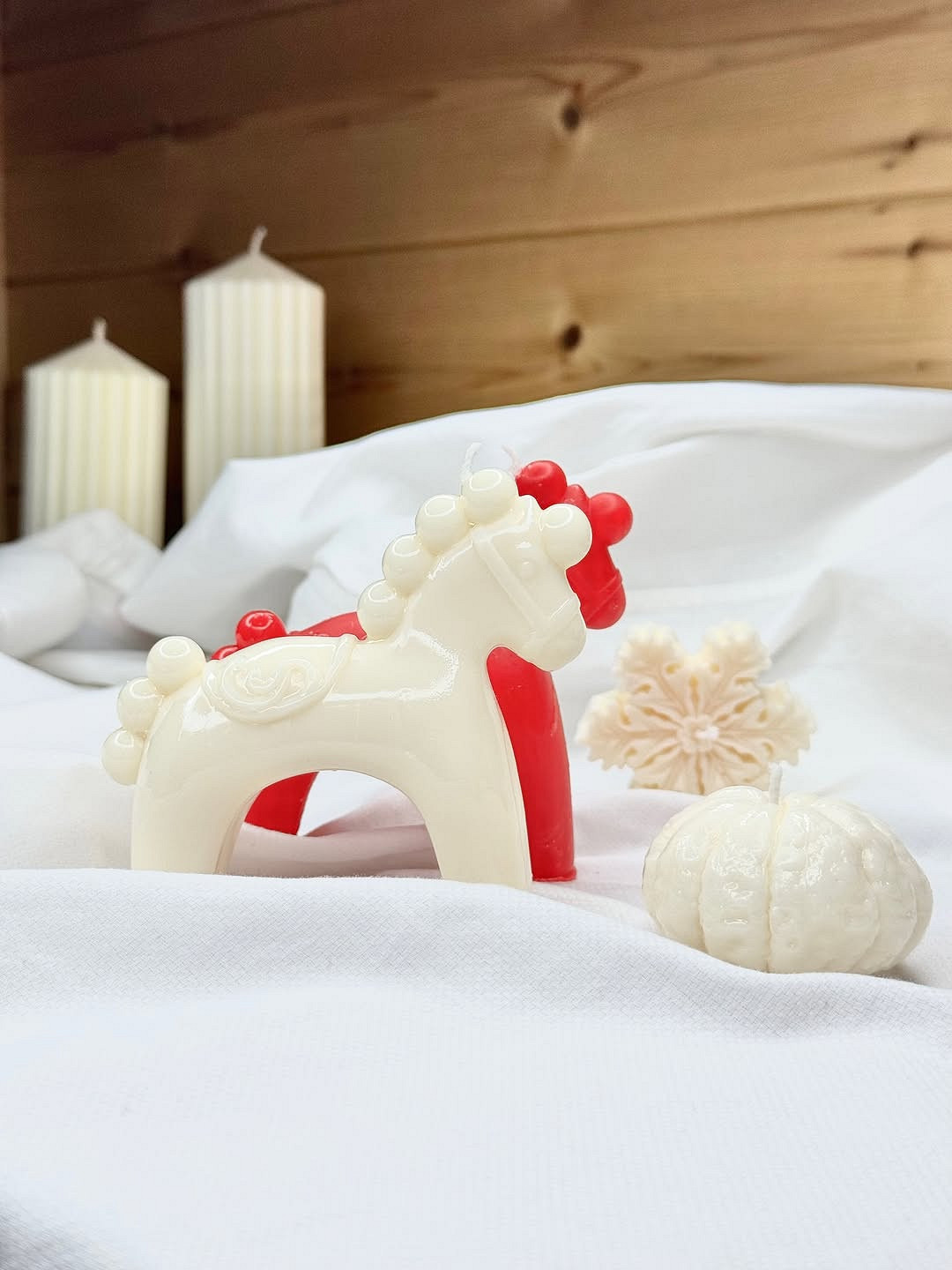 Чтобы наверняка привлечь удачу, нарисуйте на стекле подкову или следы от лошадиных копыт. Если вы сомневаетесь в своих художественных способностях, купите наклейки-витражи с изображением лошади, только выбирайте те варианты, где она скачет или пасется — рисунки с запряженным в сани уставшим конем вряд ли порадуют хозяйку года. Также подойдут декоративные фигурки, статуэтки и свечи в виде лошадей.