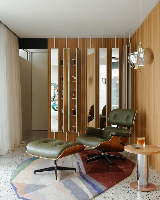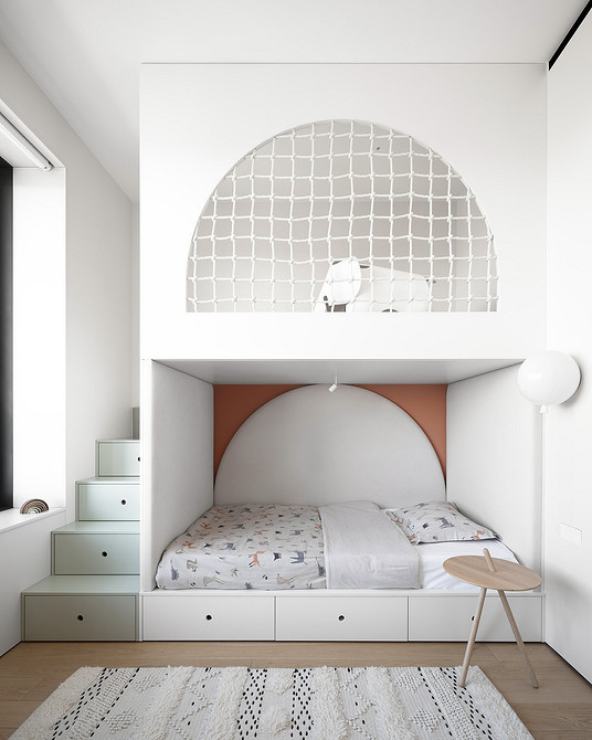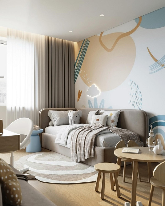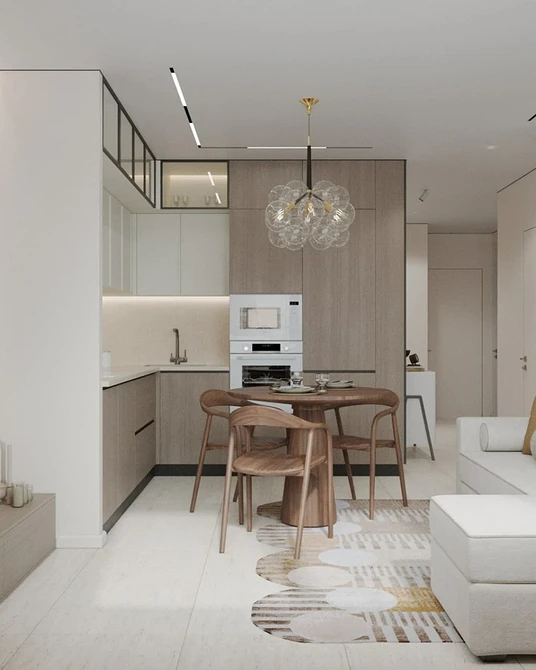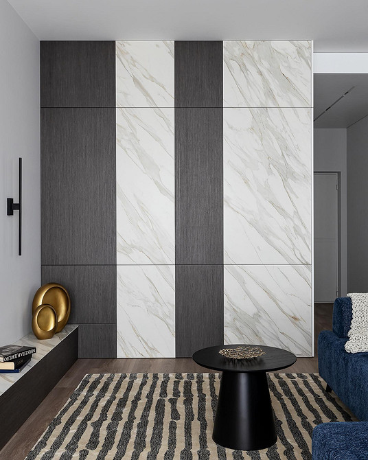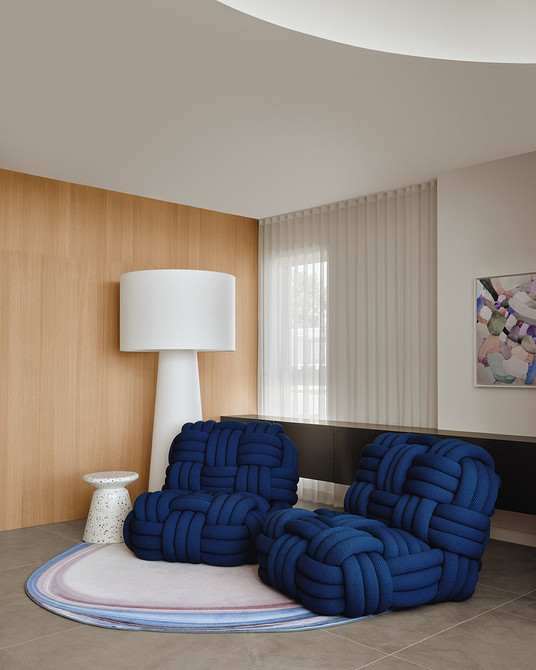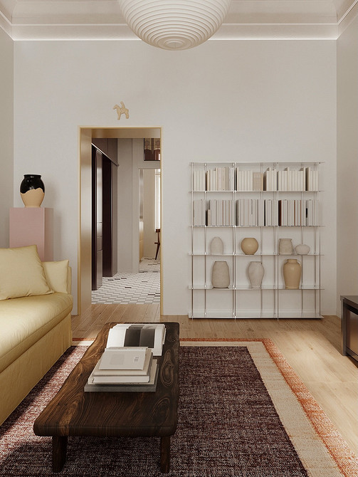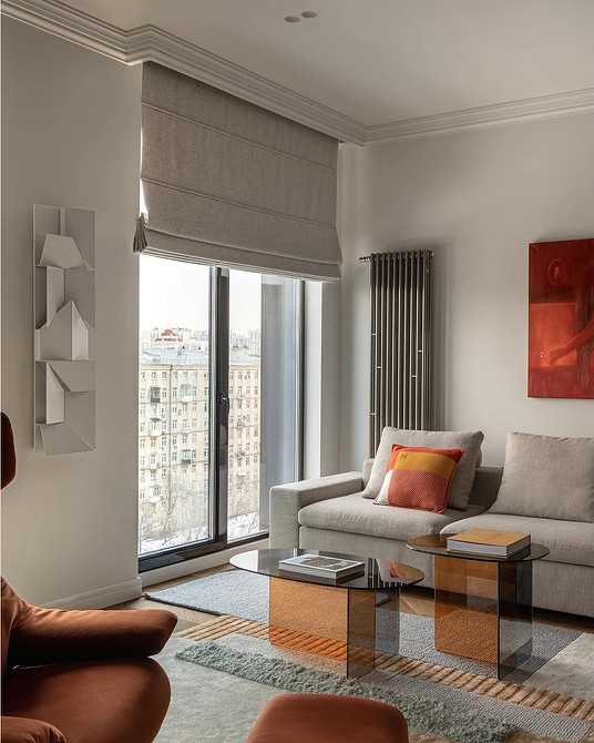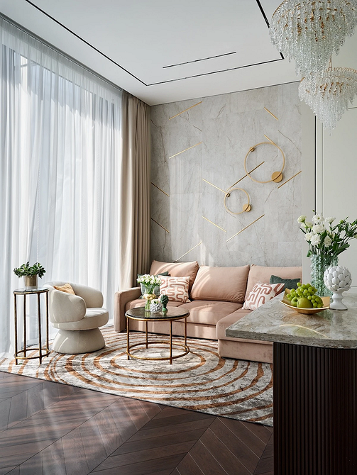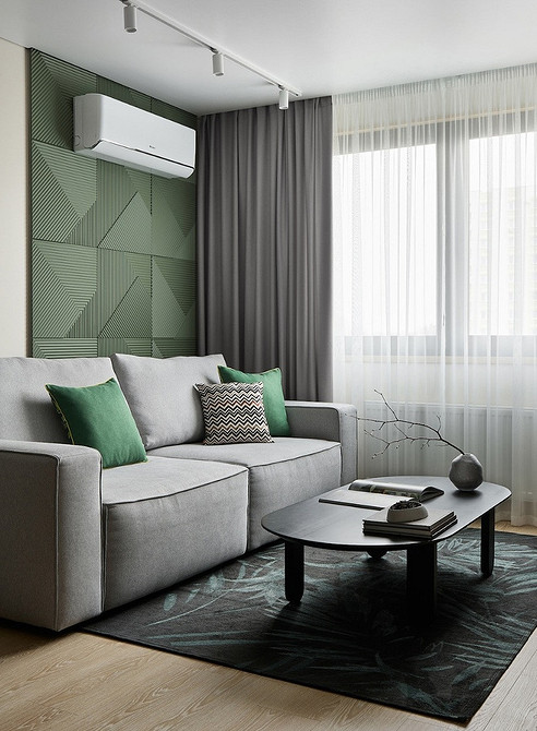 Присмотритесь к моделям с асимметричной композицией и рисунком, напоминающим калейдоскоп или 3D-графику. Особенно интересно решение смотрится в минималистичных пространствах — там ковер становится главным визуальным акцентом. А чтобы сохранить баланс, используйте нестандартную геометрию в спокойной цветовой гамме: серо-бежевых, молочных или песочных тонах.