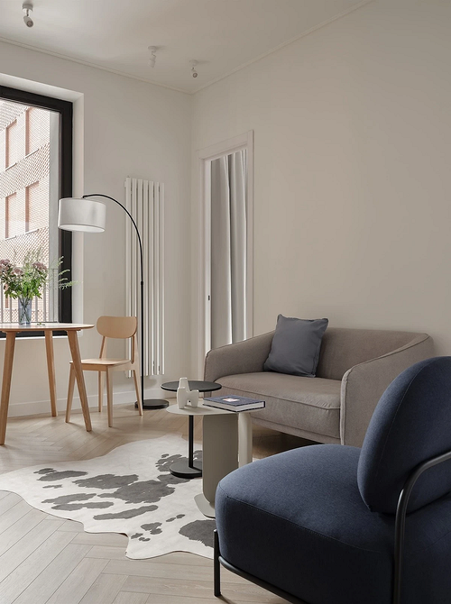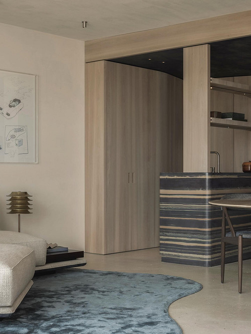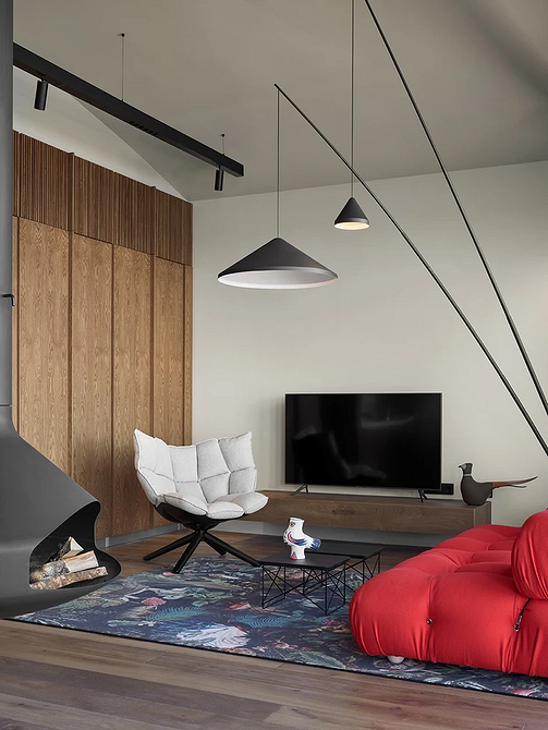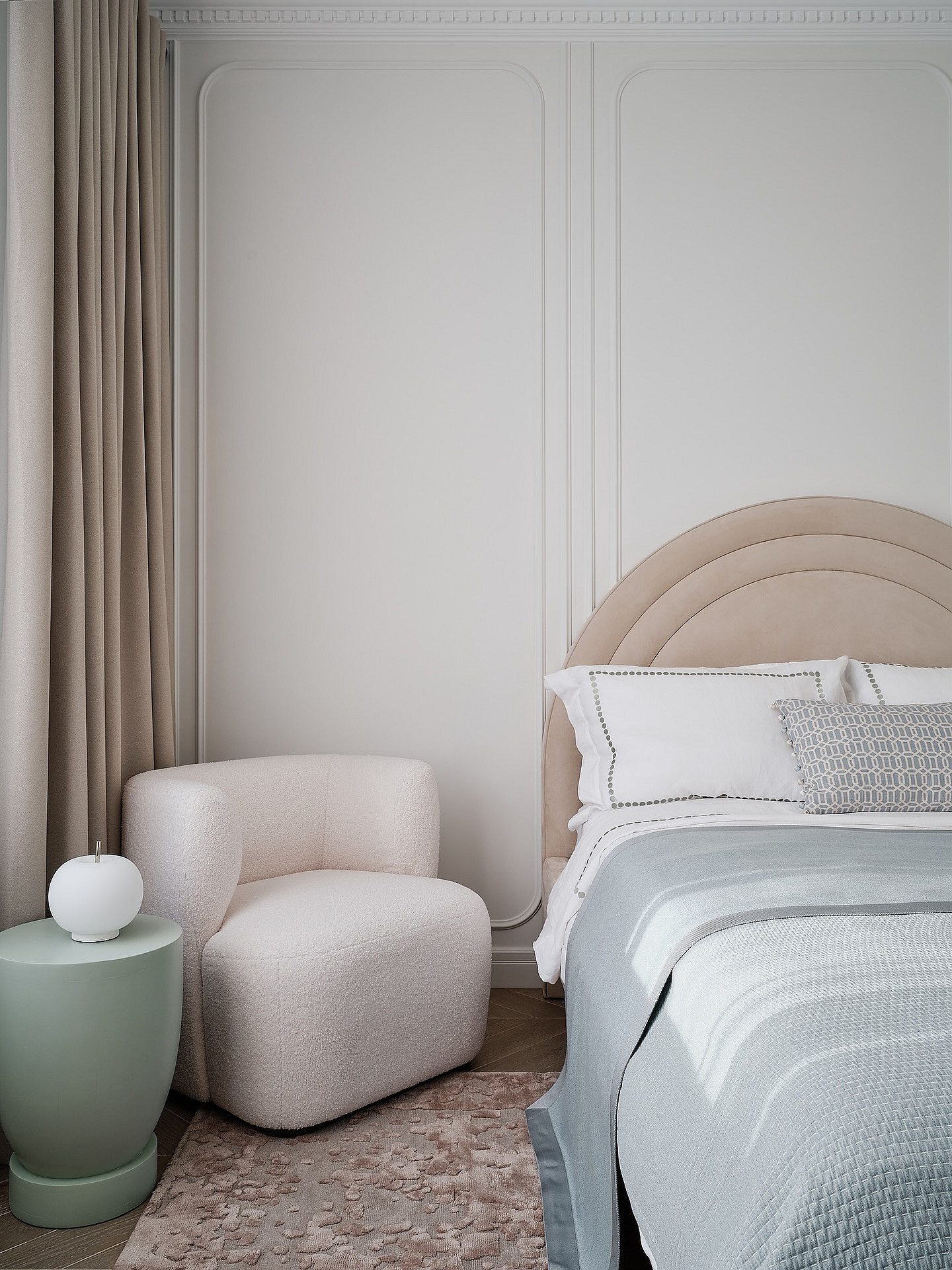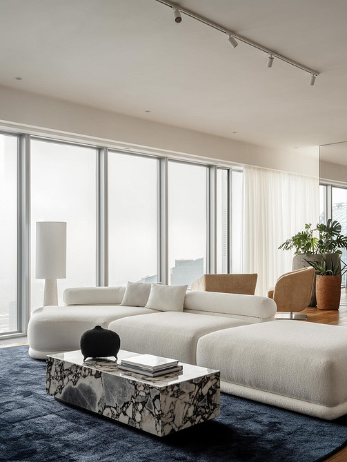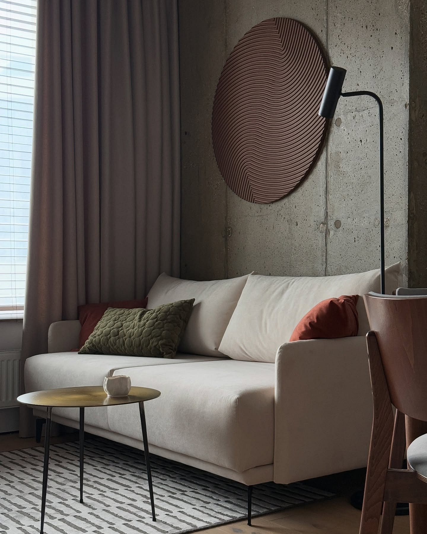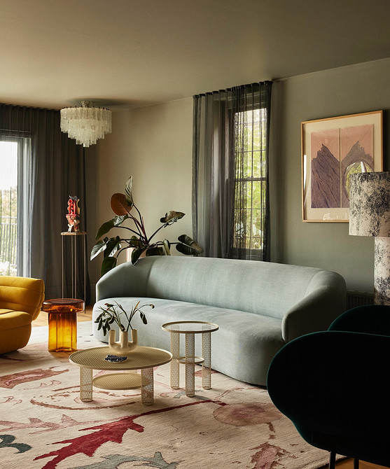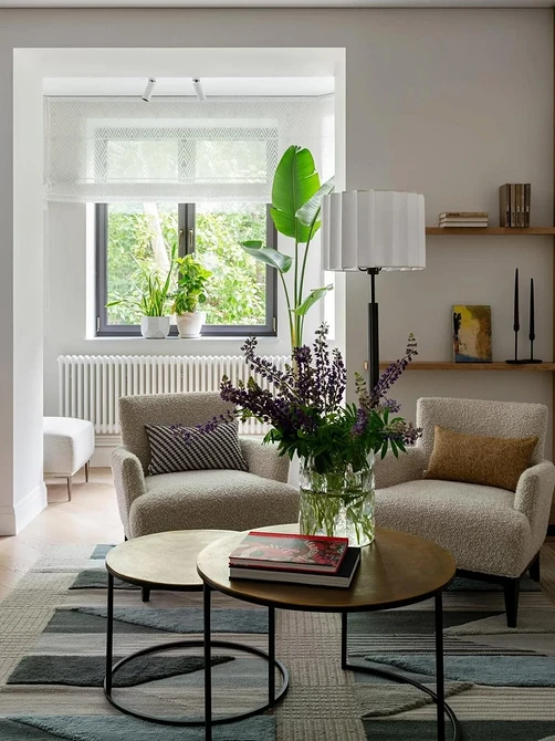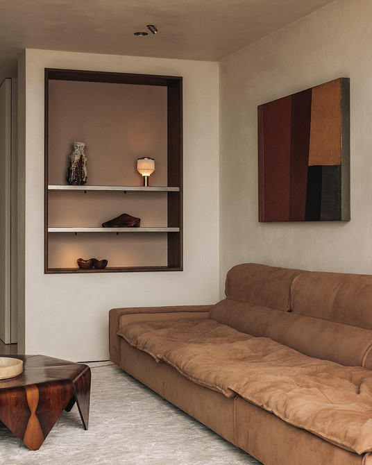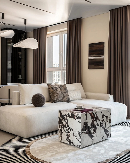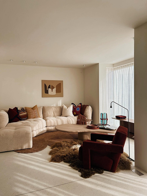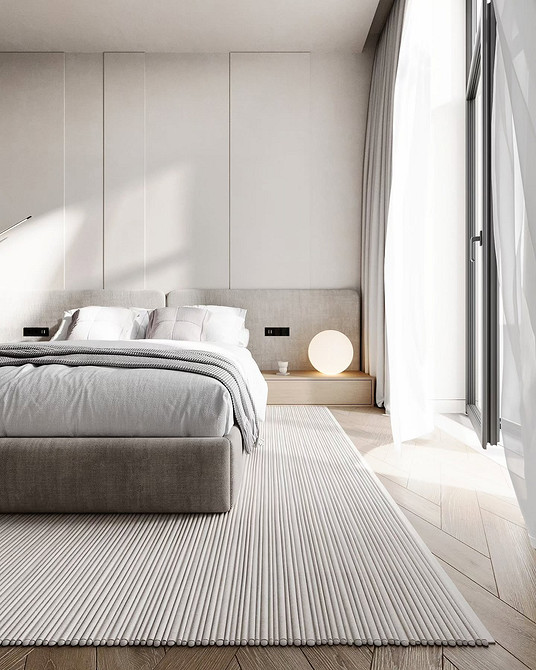 Такие ковры особенно хороши для минималистичных пространств и современных интерьеров, где важен баланс между простотой и уютом. Такая база легко подстраивается под любую палитру: от природных до насыщенных цветов. Фактурный молочный ковер работает либо как часть монохрома, либо как нестандартный акцент: например, на фоне полностью темного интерьера.