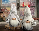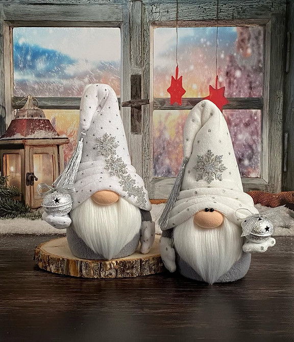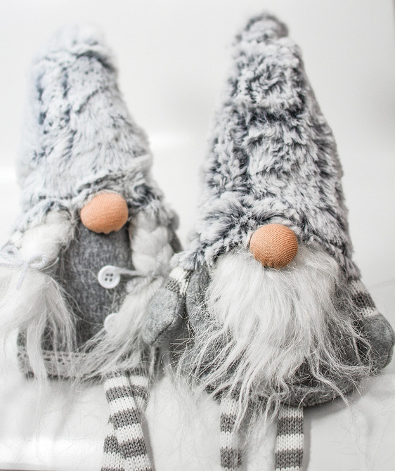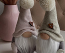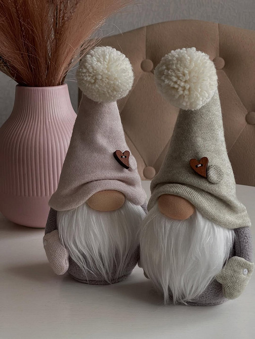 Подбирая текстиль для будущего гнома, надо учитывать и цветовую гамму. Обычно игрушку делают в близких оттенках гаммы, разбавляя их по необходимости белым. Также часто выбирают ахроматическую гамму — серый, белый и, реже, черный цвета. Классическим считается и сочетание белого или серебристого с красным — такая комбинация смотрится очень празднично. Для колпачка и туловища обычно берут однотонную ткань, а для рук и ног более пеструю, однако это не строгое требование.