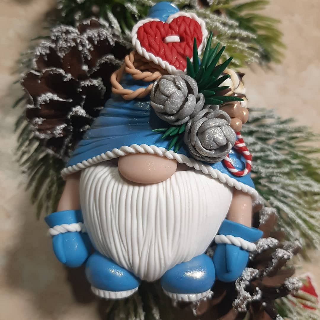 Если вы умеете вязать, то хорошей идеей будет связать игрушку, а не сшить, или сделать самого гнома из большого плотного помпона, а шапку — из красивого шерстяного носка (его надо обрезать на нужную длину и прихватить ниткой, чтобы он не расползался). Для создания маленького человечка подойдут и другие хобби: его можно изготовить из полимерной глины, полиморфуса, сплести из бисера и т.д.
