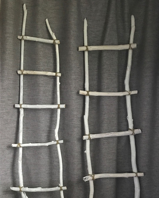 - Из более крупных частей дерева можно смастерить лестницу-вешалку, которая уместно смотрится в любой комнате.