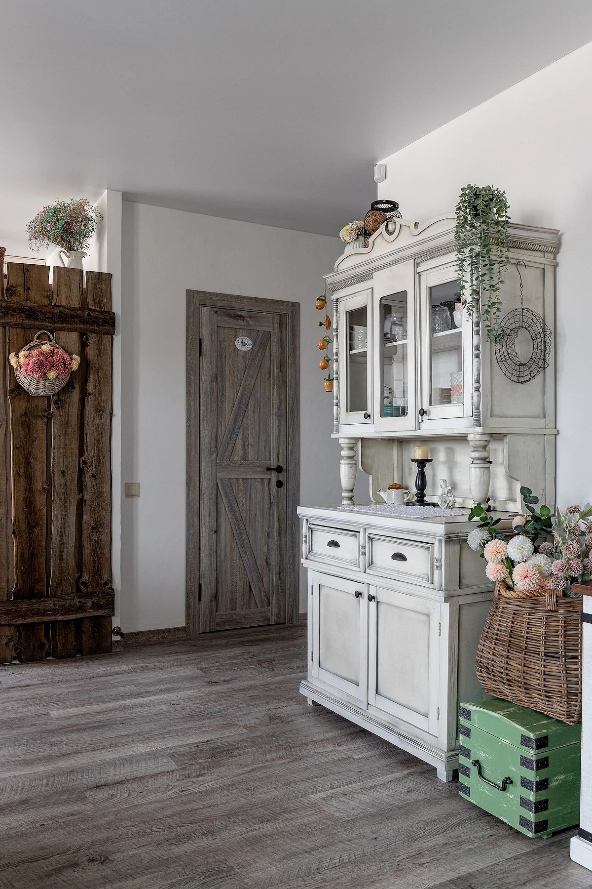 - Кантри. Это направление подразумевает максимальное использование натуральных материалов, причем в их естественном виде, и поделки из палок и коряг здесь будут как нельзя кстати. Поскольку кантри — это в первую очередь простота и утилитарность, и исключительно декоративные вещи в нем встречаются нечасто, изделия из частей дерева должны быть практичными, а не просто украшать помещение. Хорошо дополнят такой интерьер лестницы-вешалки, крючки и даже стулья с ножками-корягами.
