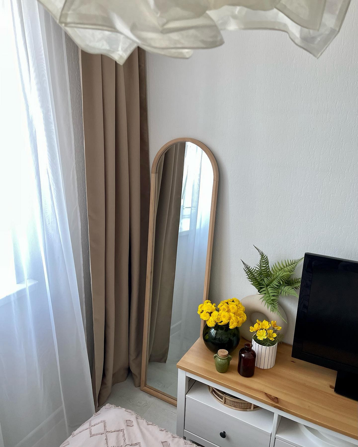 Если вы выбираете акцентные цветные шторы, то выбранный оттенок желательно продублировать в каком-то другим элементе интерьера. Это может быть мебель, крупный декор (например, картина или постер), другой текстиль. Так цветовая гамма будет смотреться более целостно и гармонично.