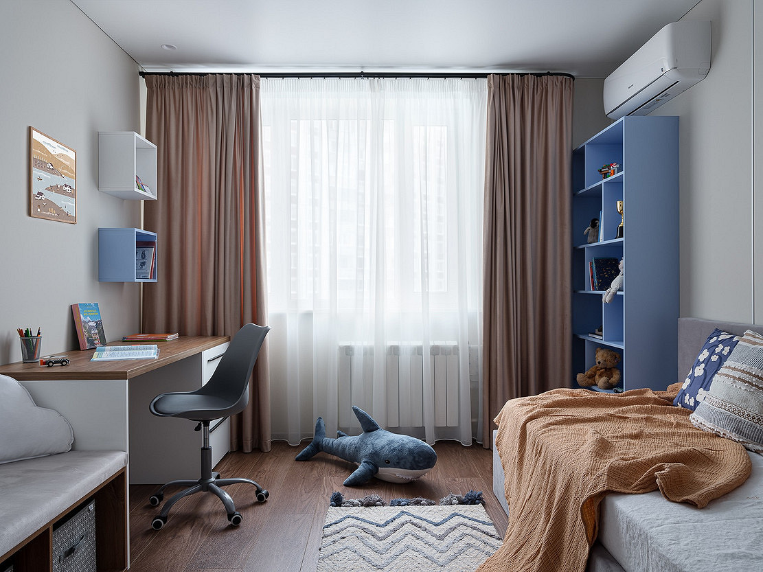 В то же время дизайн именно в этих оттенках позволяет легко добавлять нужные акценты и адаптировать помещение под возраст и характер ребенка.