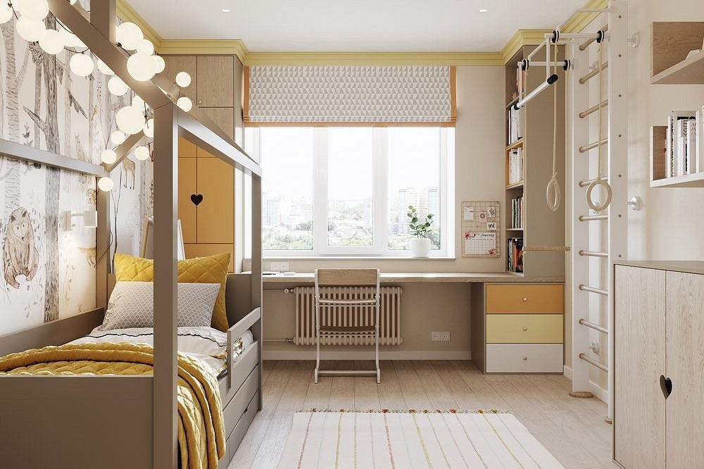 - Помните, что дети быстро растут, их вкусы стремительно меняются. Если вы не планируете делать ремонт в ближайшие 2-3 года, лучше сразу выбрать достаточно нейтральную отделку, которая не разонравится повзрослевшему ребенку.
