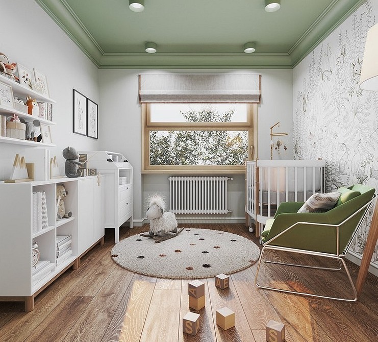 В первом случае подберите покрытия в нейтральном гендерно-нейтральном оттенке: бежевом, коричневом, сером или белом. В качестве добавочного цвета может идти желтый, голубой, оранжевый, зеленый, красный (будьте с ним осторожны!) — или несколько сразу.
