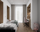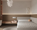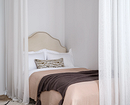Предпочтительна светлая расцветка. Используйте белый, бежевый, молочный и другие пастельные тона. Зонировать такую спальню можно цветовыми акцентами: например, выделить стену за кроватью.