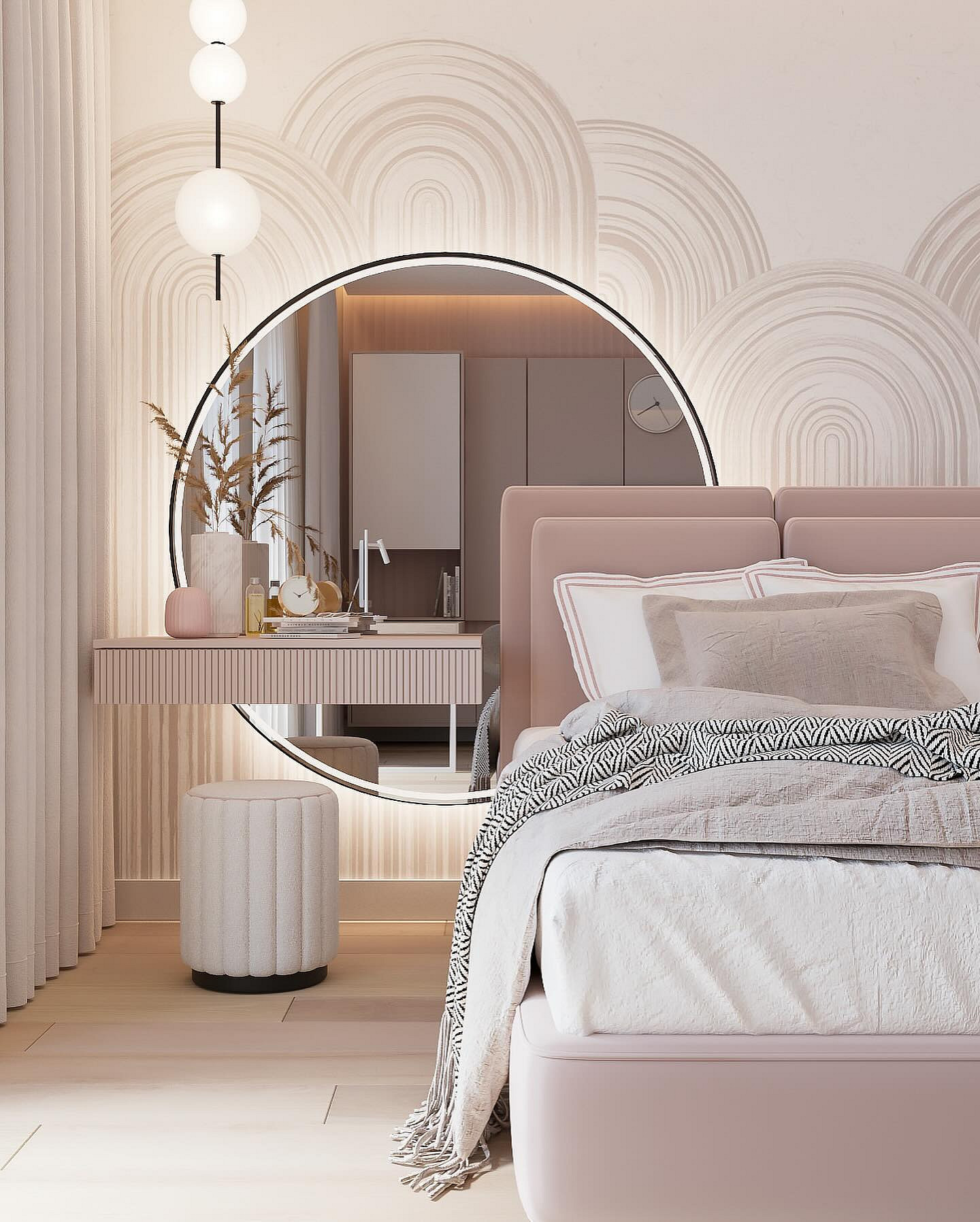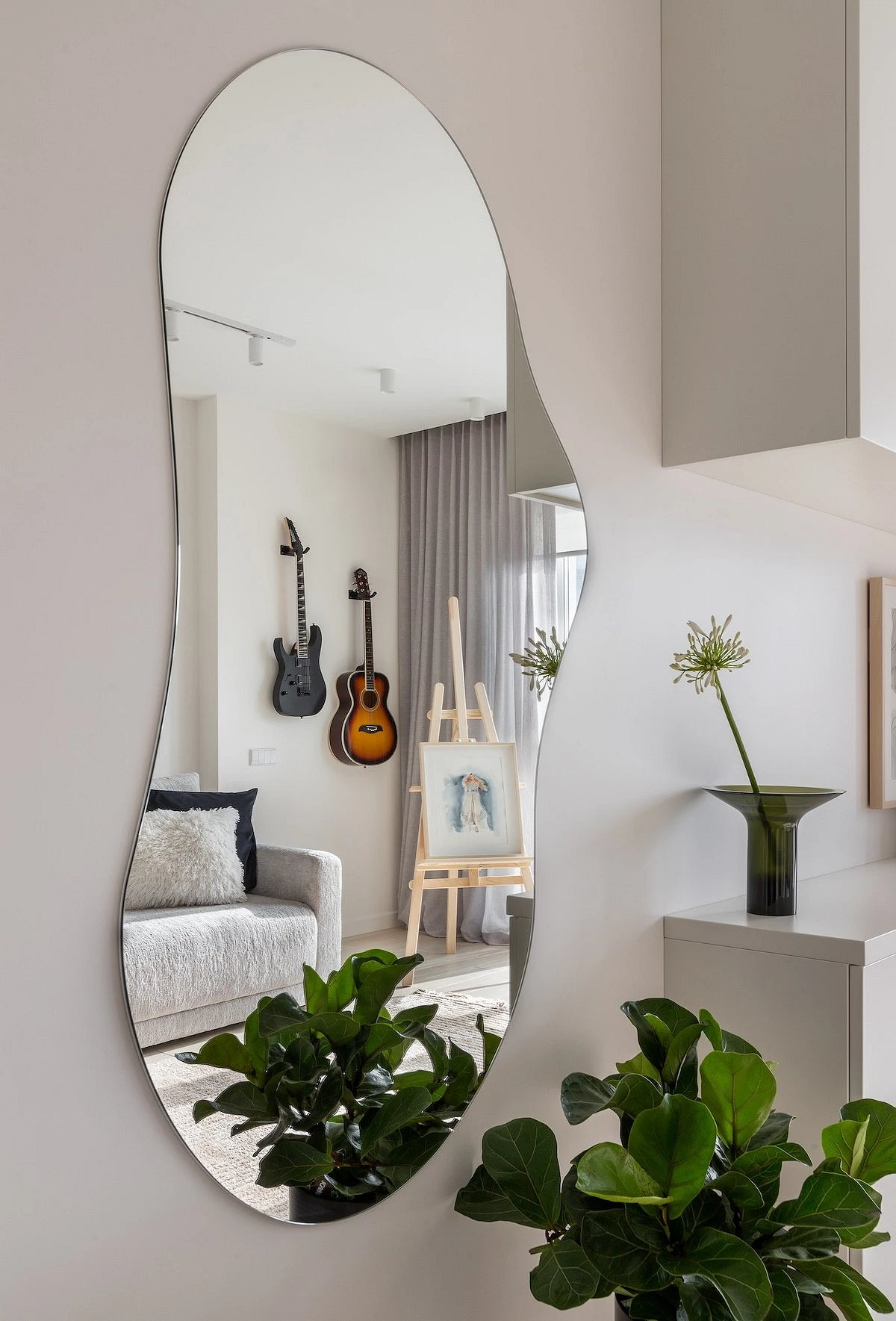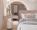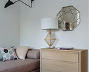 - Уголок красоты — даже небольшой столик с зеркалом и правильной подсветкой решит проблему хранения косметики и утренних сборов, освободив общую ванную комнату.