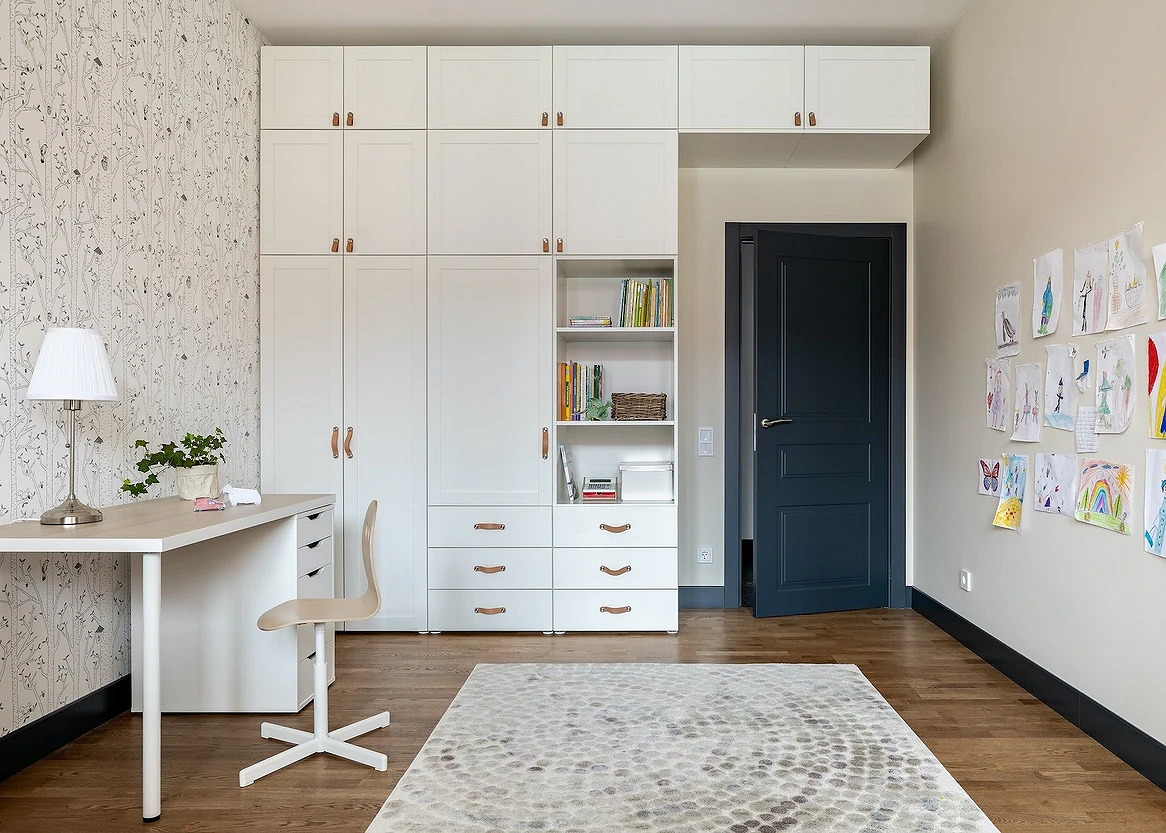 - Гардеробную систему. Если позволяет планировка, обустройте отдельную комнатку. Если нет — гардеробный либо обычный вместительный шкаф. Главное, чтобы вся одежда хранилась в одном месте и у подростка был доступ ко всем секциям.