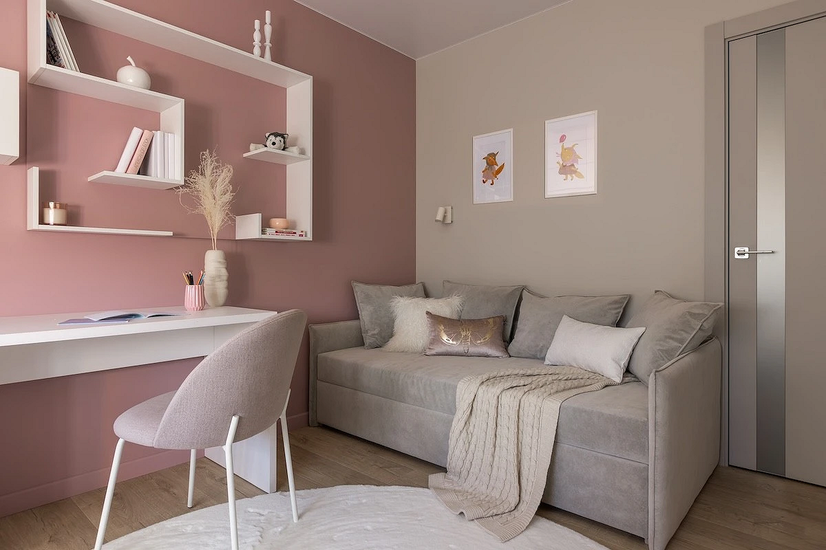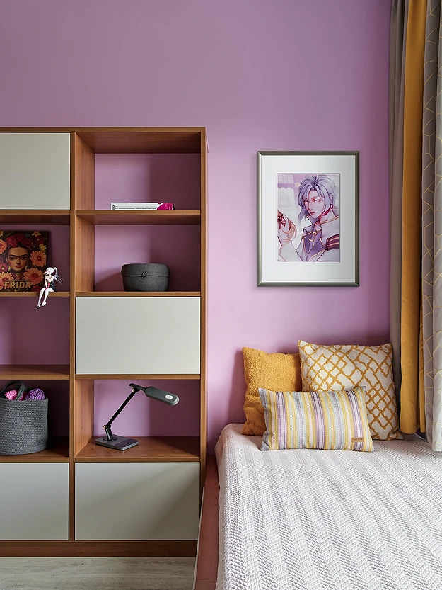 Используйте насыщенные цвета как акценты, которые вы сможете легко заменить в будущем. Например, яркой можно сделать одну стену или добавить сочных красок через текстиль и мелкую мебель. Так интерьер не надоест через год, а при изменении вкусов подростка вам не придется затевать полномасштабный ремонт.