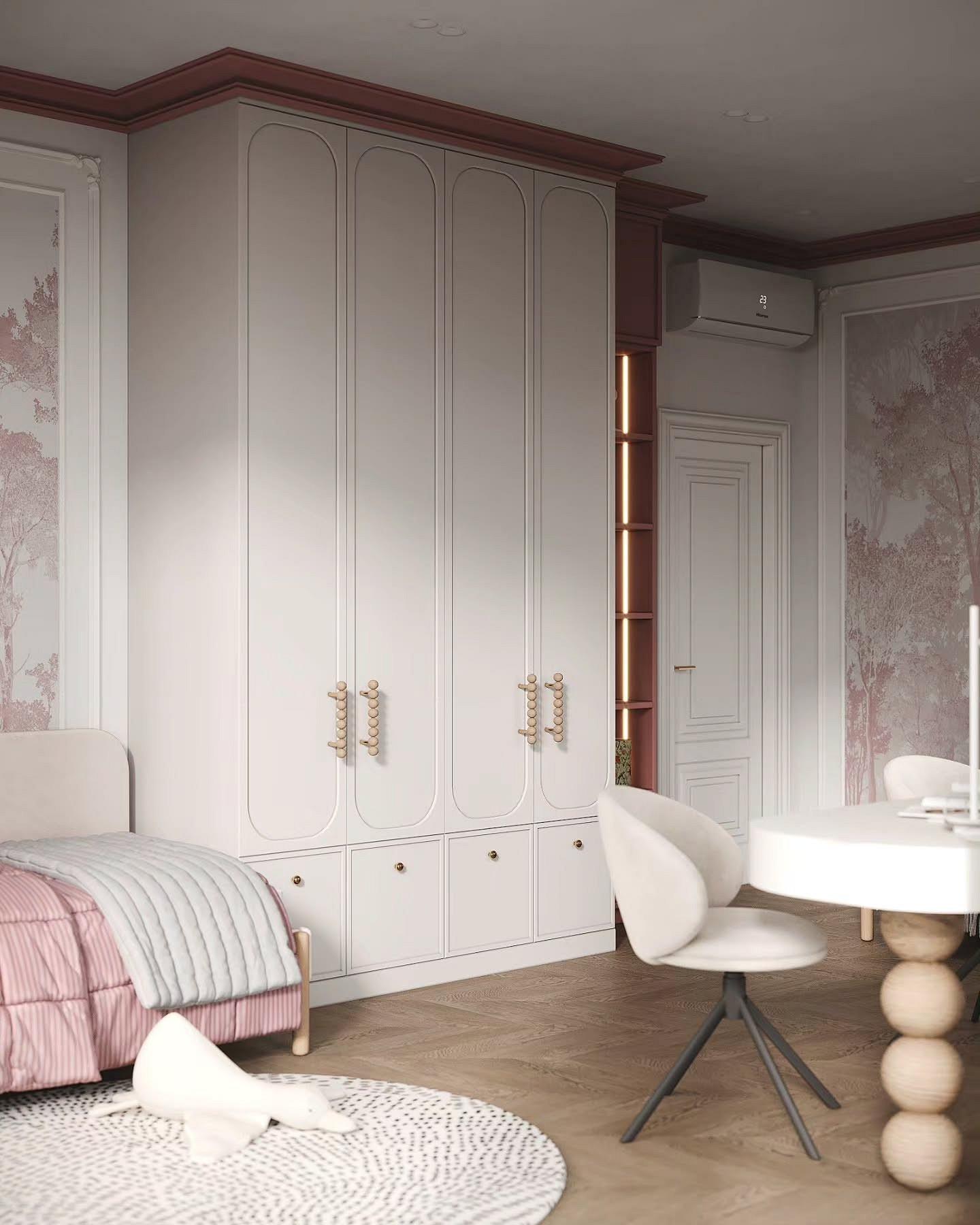 Вместо тематических обоев и фигурной мебели лучше выбрать качественную нейтральную базу. Это позволит интерьеру «расти» вместе с хозяйкой: сегодня она захочет оклеить стены плакатами, а завтра — уйти в минимализм, и комната в обоих случаях будет выглядеть гармонично. Ваша задача — создать эргономичный и безопасный интерьер, который ребенок наполнит декором самостоятельно. И пусть комната не идеально вписывается в общий стиль — это нормально.