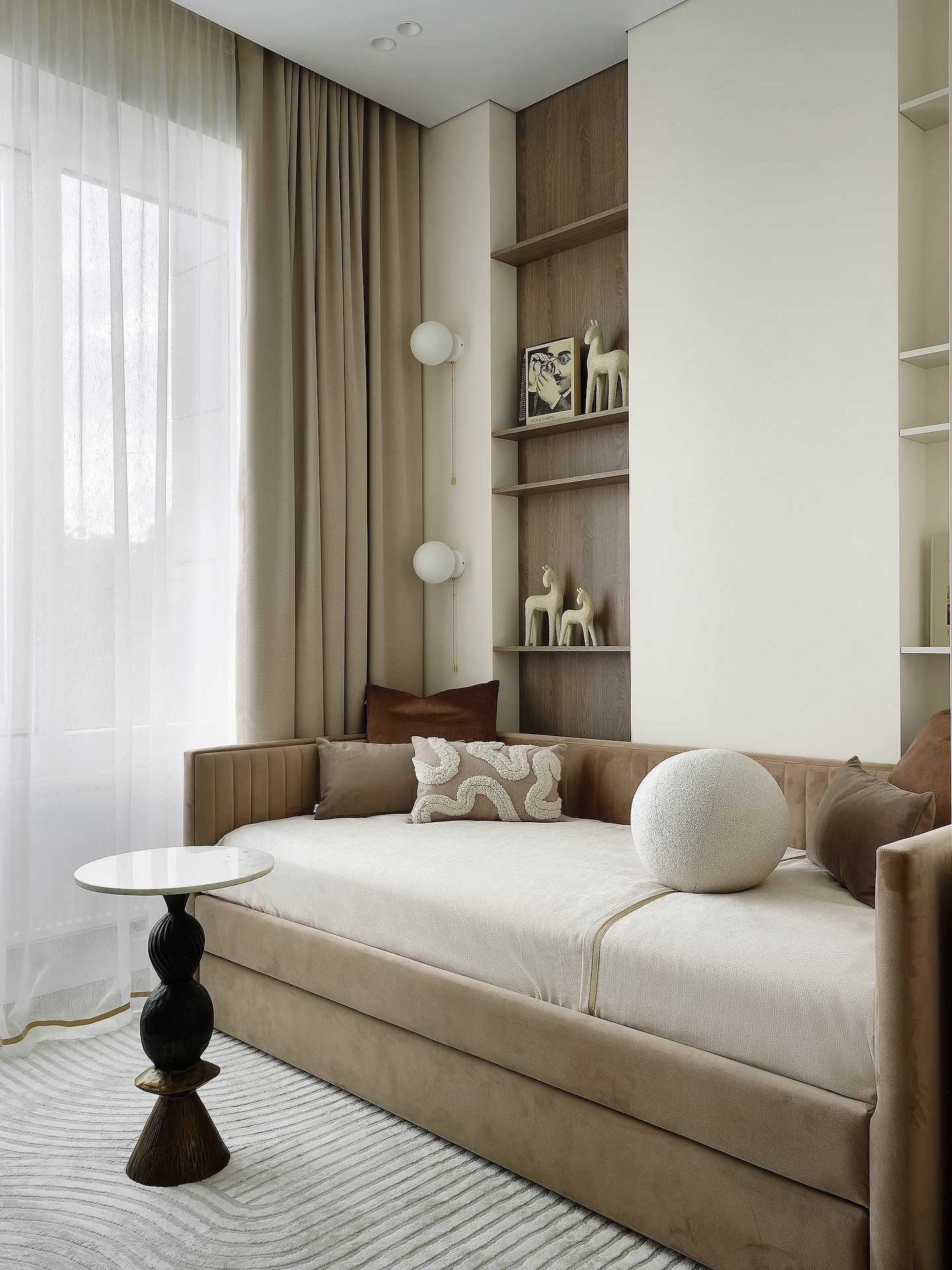 - Песочный и классический беж — создают мягкую обволакивающую атмосферу, подходят для любого стиля.