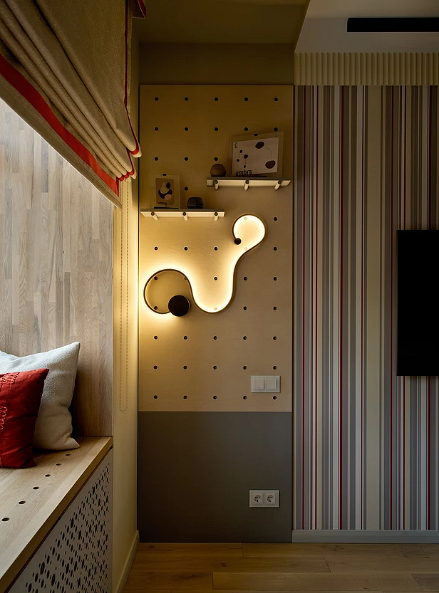 А если хотите сделать детскую более уютной, повесьте гирлянды с теплым мерцанием, поставьте ночники или оформите одну зону гибким неоном. Декоративную подсветку можно расположить над кроватью, вокруг окна или в любом другом месте.