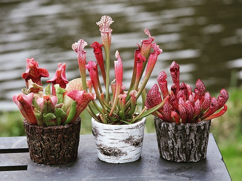 Венерина мухоловка и саррацения нуждаются в полноценном зимнем периоде. Это значит, что важно обеспечить им температуру не выше 10° С и сократить полив. Поливать нужно, когда пересохнет земляной ком, при более частом увлажнении на цветках быстро заведется плесень. Ничего страшного, если у венериной мухоловки начинают чернеть «ловушки». Нужно дождаться, пока они полностью отсохнут, и аккуратно срезать, обработав место среза.