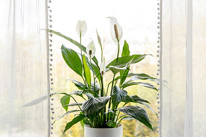 В народе это растение называют «женское счастье». Оно украсит любой подоконник, в том числе — мало освещенный. Спатифиллуму не требуется много света, а под яркими прямыми лучами он и вовсе получает ожоги, поэтому северная сторона ему идеально подходит. В уходе цветок достаточно неприхотлив, но он родом из тропиков, поэтому важно обеспечить ему тепло и влажный воздух. Помимо достаточного полива, спатифиллум нужно опрыскивать каждые пару дней, а раз 2 недели — купать.