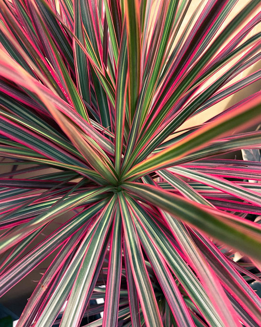 - Маджента — своими тонкими остроконечными листьями она напоминает пальму, поэтому ее часто используют, чтобы придать дому тропический колорит. Цвет листовых пластин насыщенно зеленый, а по краю идет узкая красная кайма.
