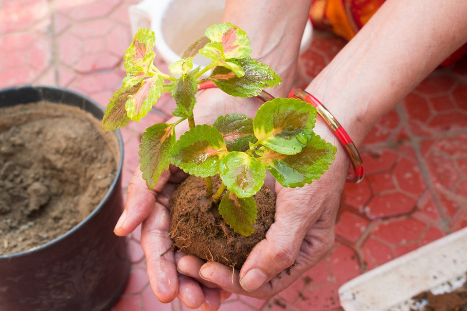 Правила выращивания и ухода за колеусом предполагают, что его нужно ежегодно заменять или обновлять. Однако при хорошем уходе и правильном формировании цветок вполне может прожить несколько лет. В этом случае его желательно ежегодно пересаживать в свежий грунт. Лучше всего делать это в начале активной вегетации, которая приходится на начало-середину марта. Если растение не успело полностью освоить субстрат в посадочной емкости, разрешается отложить пересадку до следующего года.
