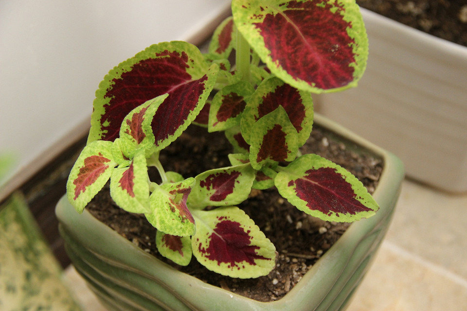 До появления всходов регулярно проветривают «мини-тепличку» и по мере необходимости увлажняют почвосмесь. После проклевывания росточков укрытие убирают. Подросшие колеусы распикировывают. Это делают после того, как у них появится вторая пара настоящих листиков. Их рассаживают в небольшие горшки по несколько растений в каждый. Подросшие молодые сеянцы пересаживают в постоянные горшочки.