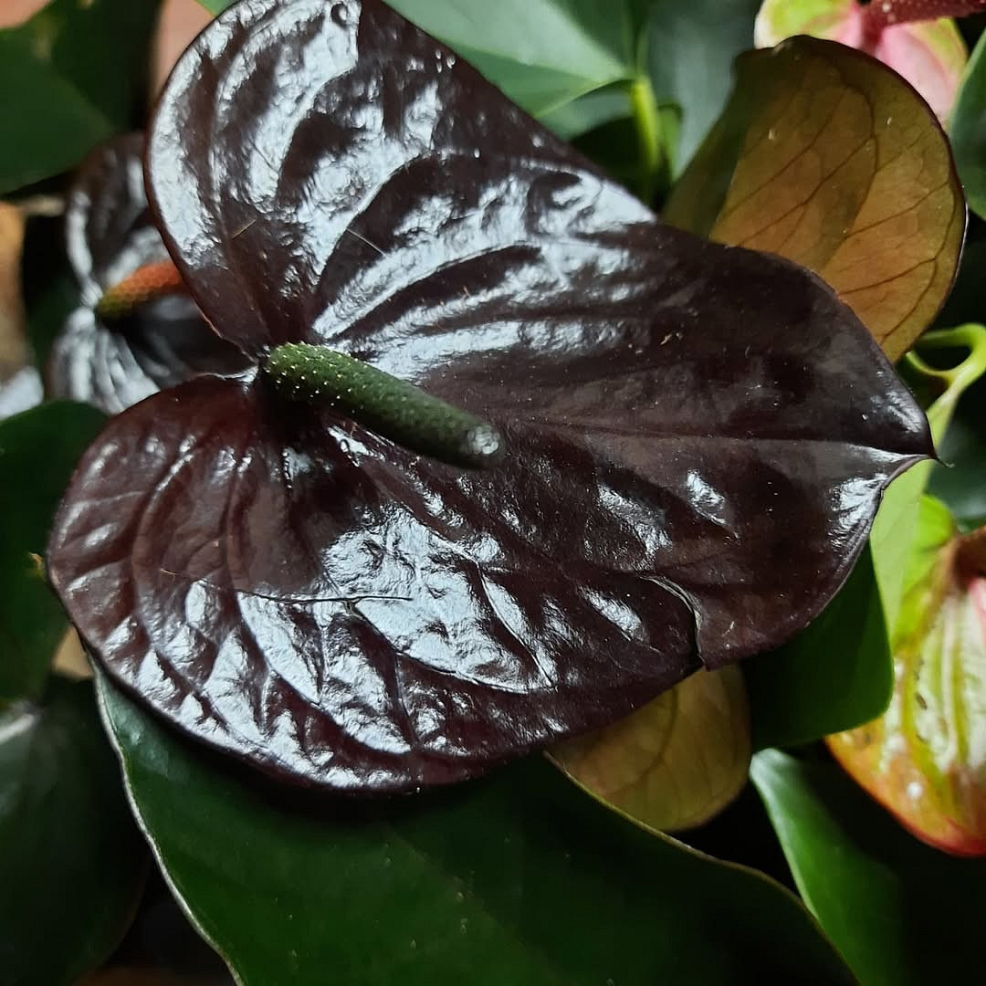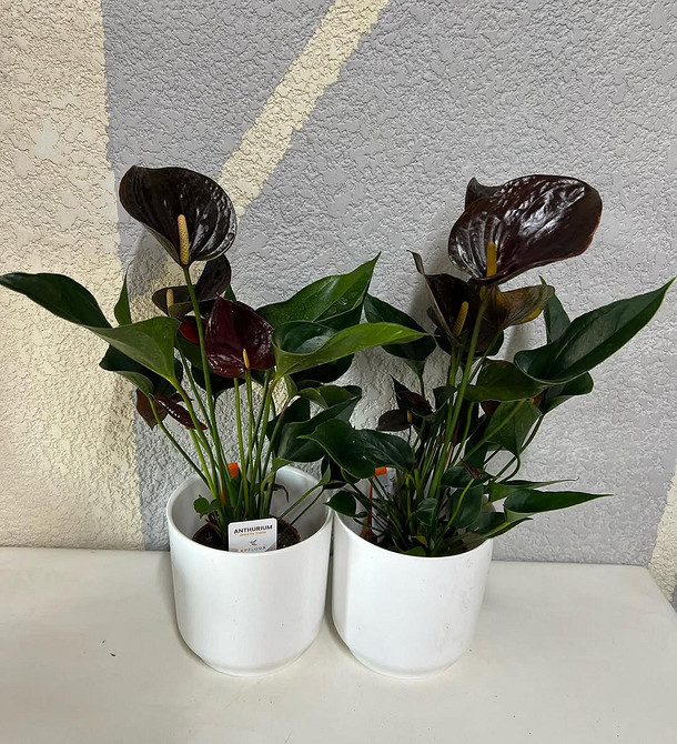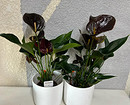 Черные цветы всегда привлекают внимание. А антуриумы в такой расцветке интересны вдвойне: за счет необычных соцветий и глянцевого блеска они выглядят так, словно попали к нам с другой планеты.