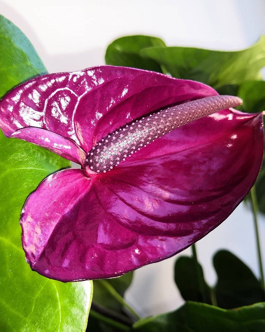 Антуриум, чье название переводится как «цветок-хвост», давно влюбил в себя цветоводов. Насыщенные расцветки и глянцевый блеск придают этому тропическому растению невероятно эффектный вид — нередко его принимают за искусственное, настолько броско и необычно выглядят его листья и бутоны.