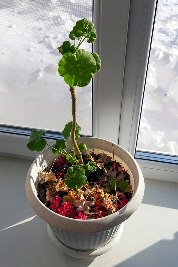 Не меньше, чем низких температур, герань боится сквозняков. Ледяной ветер, врывающийся в дом при проветривании зимой, легко спровоцирует пожелтение листьев и ослабит растение. Поэтому на зиму горшок стоит переставить на то окно, которое не открывают.