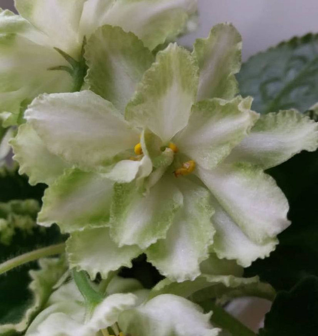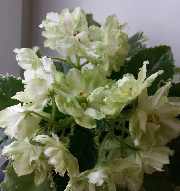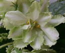В начале цветения цветочки бело-розовые, позже появляются зеленые тона, постепенно превращаются в золотисто-зеленую кайму. Цветки долго не держатся. Цветение продолжительное и обильное. Сорт теплолюбив, оптимальная температура — 20-22℃. В прохладе изменяет расцветку, не формирует зеленую кайму. Полив нужен умеренный, но регулярный. Не переносит попадания капель на листву, лучше поливать фитильным способом или через поддон.