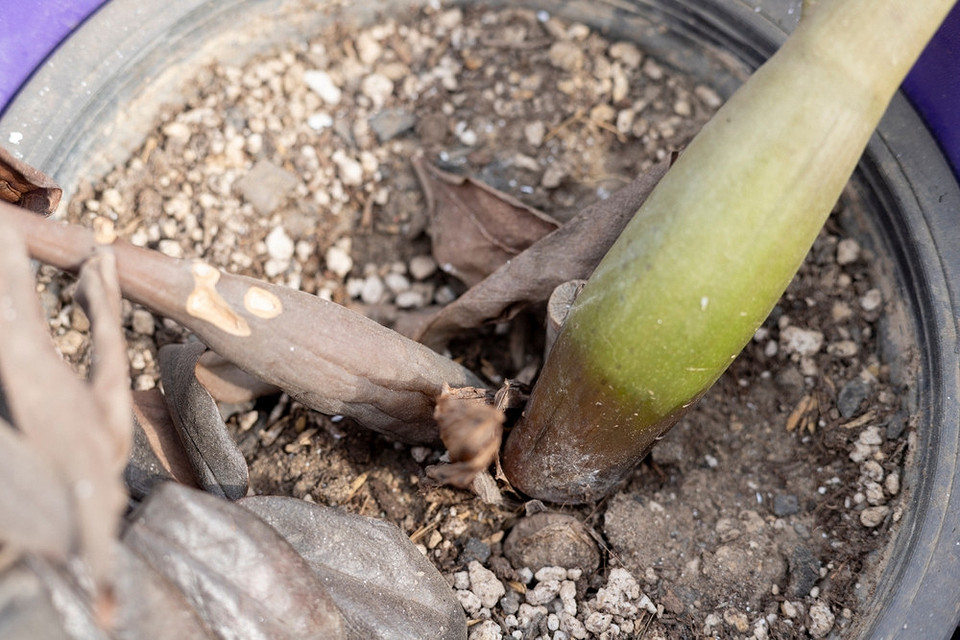 Загнивание корней вызывает пожелтение листовых пластин. Дополнительными признаками, указывающими на гниль, можно считать размягчение и потемнение нижней части черенков и пеньков, оставшихся от отмерших листьев. Спасти растение может только срочная пересадка. Его аккуратно вынимают из емкости, отряхивают, а потом полностью смывают почвосмесь. Острым ножом срезают все загнившие участки, на клубнях не должно остаться очагов заболевания. После этого корни на час замачивают в любом фунгициде или растворе медного купороса.