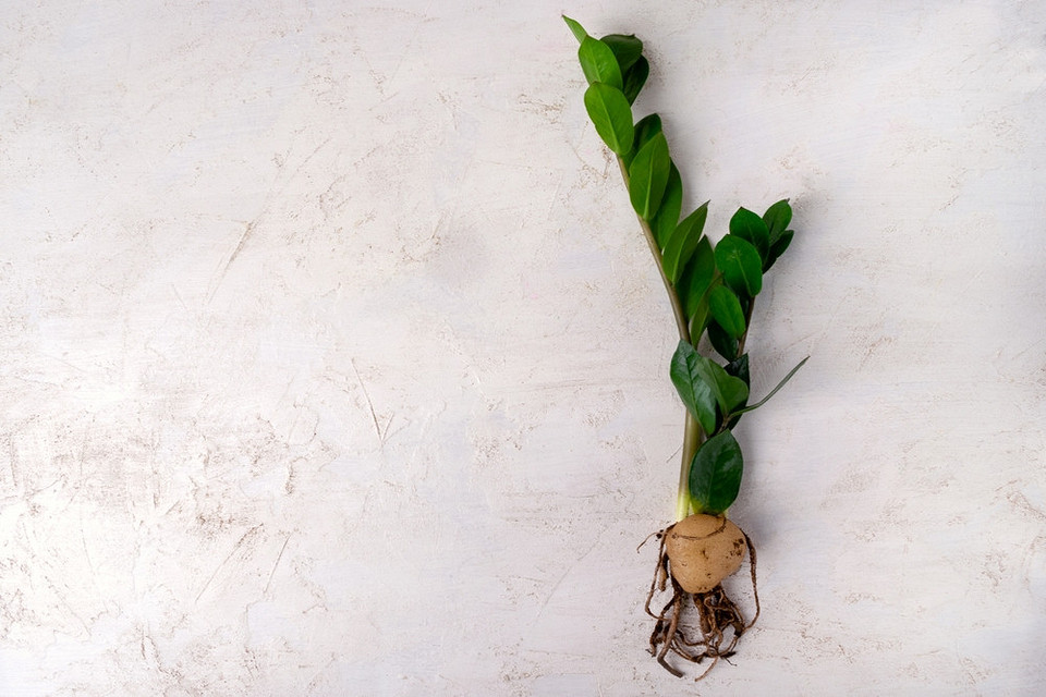 Травянистый многолетник относится к ароидным, семейству, принадлежащему к суккулентам. Замиокулькас имеет интересное строение, которое оказывает влияние на его приспосабливаемость и выживаемость. У куста необычные корни, листья и стебли. Так, подземная часть растения представлена продолговатыми клубнями. Это, скорее, стебли, в которых находится запас влаги. От клубеньков отходят небольшие всасывающие корешки. Сразу из клубней растут листья, нет ни побегов, ни стеблей. Листовая пластинка замиокулькаса сложной формы, подобное строение имеют листики акации или рябины. То, что кажется стеблем, на самом деле черешок, к которому прикрепляются части листа.