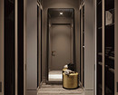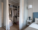 - Гардеробная-невидимка. Часто зону хранения полностью скрывают. Для этого ставят скрытые двери, которые отделывают тем же материалом, что и стены. В итоге в закрытом виде вход практически незаметен.