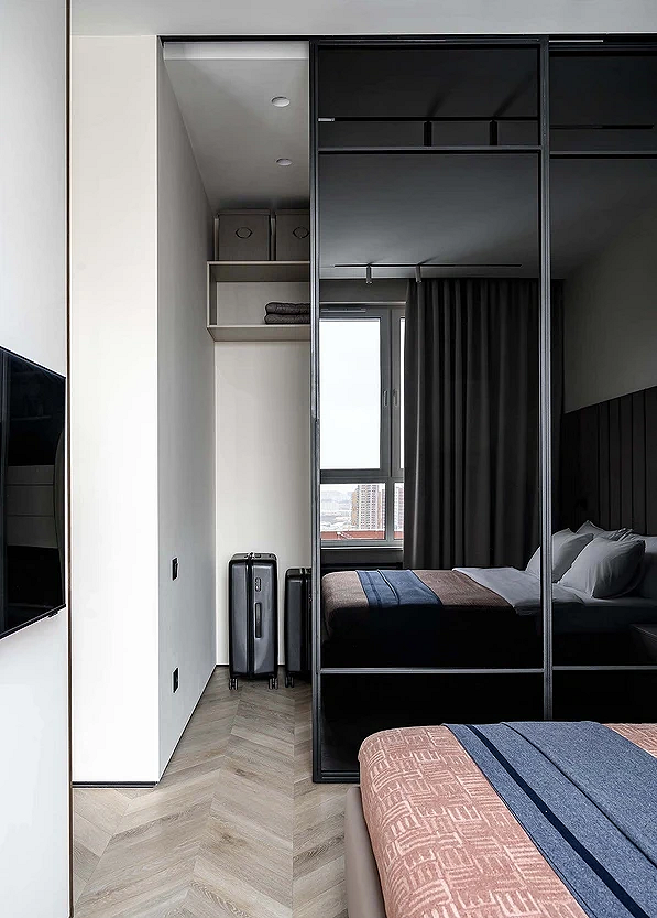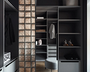 - Зеркальные полотна. Это эффективный способ зрительно удвоить площадь комнаты и решить вопрос с примеркой. Зеркала могут быть как классическими, так и с графитовым или бронзовым напылением для большей декоративности.
