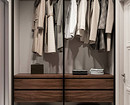 - Средняя зона — основная, она должна располагаться на уровне глаз и рук. Здесь размещаются штанги с повседневной одеждой, полки для трикотажа и выдвижные ящики для белья.
