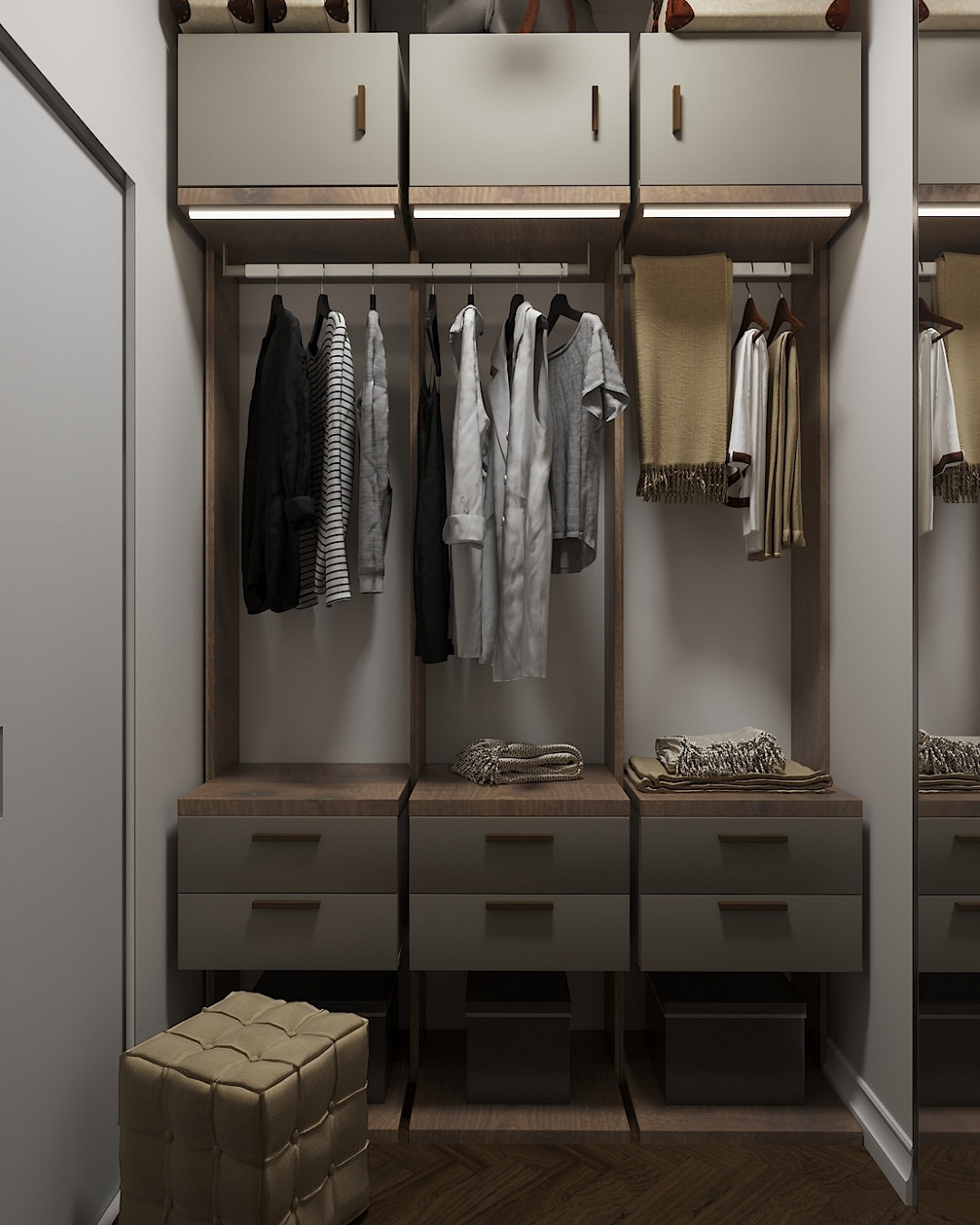 Чтобы гардеробная была удобной, а не превратилась в тесный склад, важно тщательно продумать ее эргономику, прежде чем переходить к дизайну. Вот что