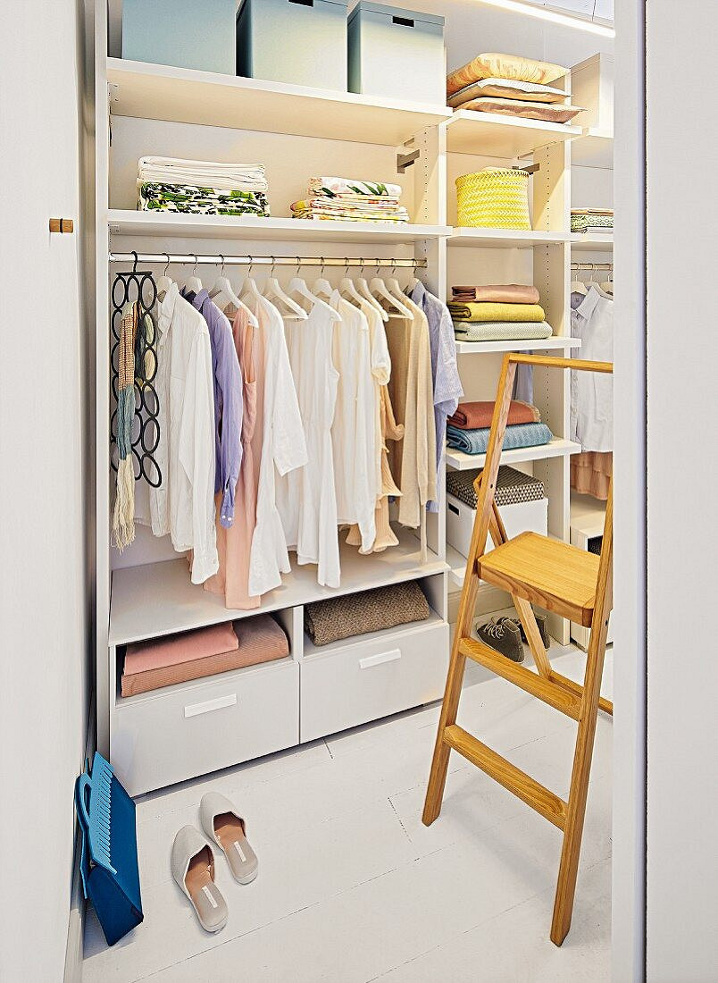 - Верхние ярусы отдайте под сезонную одежду или постельное белье..